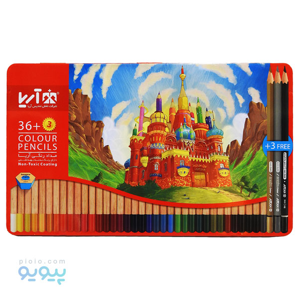 مداد رنگی 3+36 عددی آریا با جعبه فلزی کد b172