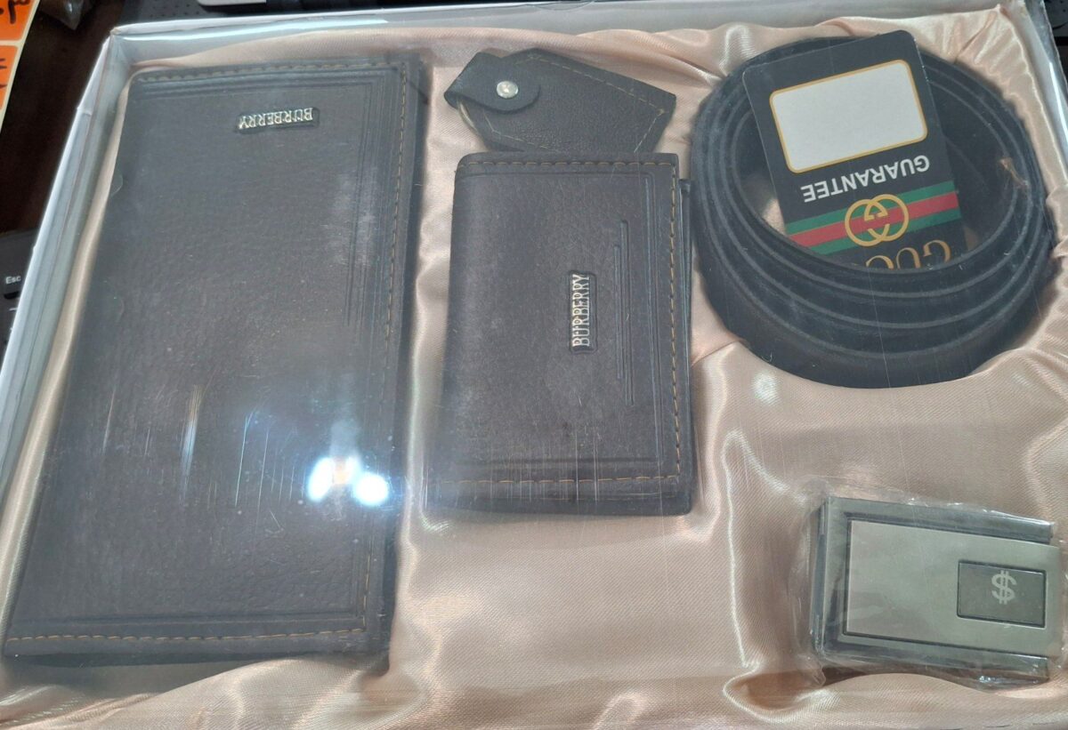 ست 5 تیکه هدیه مردانه چرم قهوه ای سوخته کد k5802