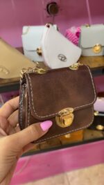 کیف مینی بگ قفلی زنجیر دار رنگ قهوه ای روشن کد k12264